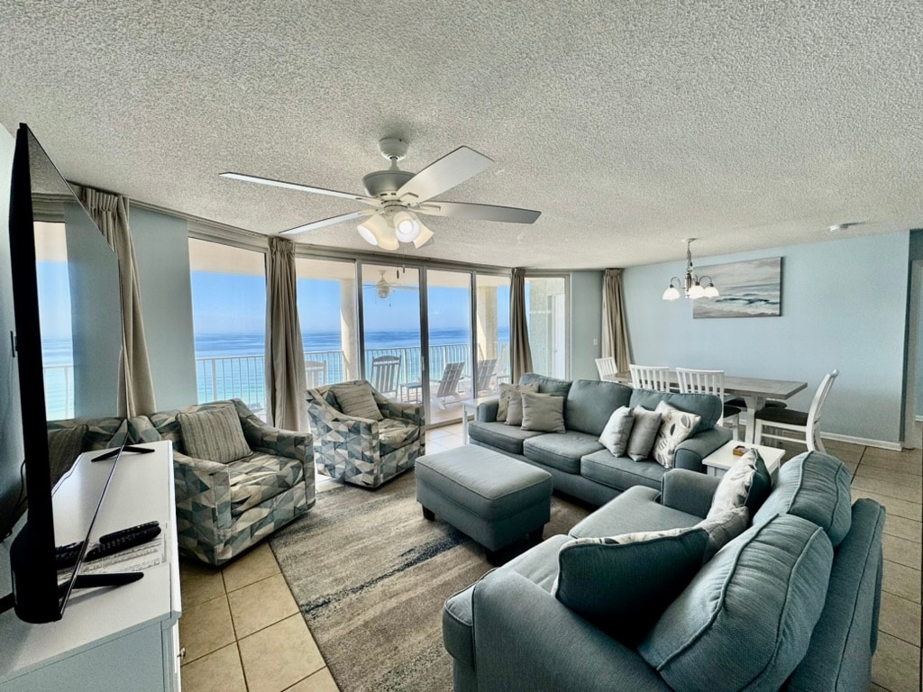 Highlights You’ll Love: • Direct Gulf-front condo with sweeping shoreline views • Oversized private balcony for dining and lounging • Free beach chair service included (2 loungers + umbrella, March–October) • Sleeps 6: two king bedrooms plus twin bunk alcove • Two full bathrooms for comfort and privacy • Smart TVs in all rooms + large Smart TV in the living room • Fully stocked kitchen with coffee/tea bar and generous supplies • In-unit washer/dryer with starter laundry items • Resort amenities: