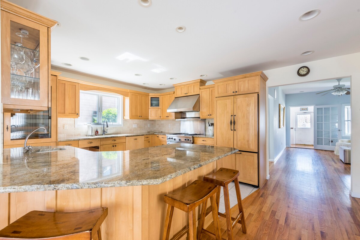 Fleksible datoer og priser, bare spørg. Denne Bay Head-bolig har 5 soveværelser, 3 badeværelser. Åbent køkken med kommercielt komfur, vin- og drikkevarekøleskab. 2 zone HVAC. Badeværelserne er i marmor med håndklædevarmere. Det store badeværelse har et dampbrusebad med regnhoved. Det andet badeværelse har et jacuzzi-bad. Trægulve overalt, vaskemaskine, tørretumbler, stort spisebord, udendørs brusebad, grill. Kort gåtur til strand, by eller tog (til NYC, Asbury Park eller Hoboken). Byen kræver 7 nætters booking. Kontakt os, hvis du har spørgsmål.