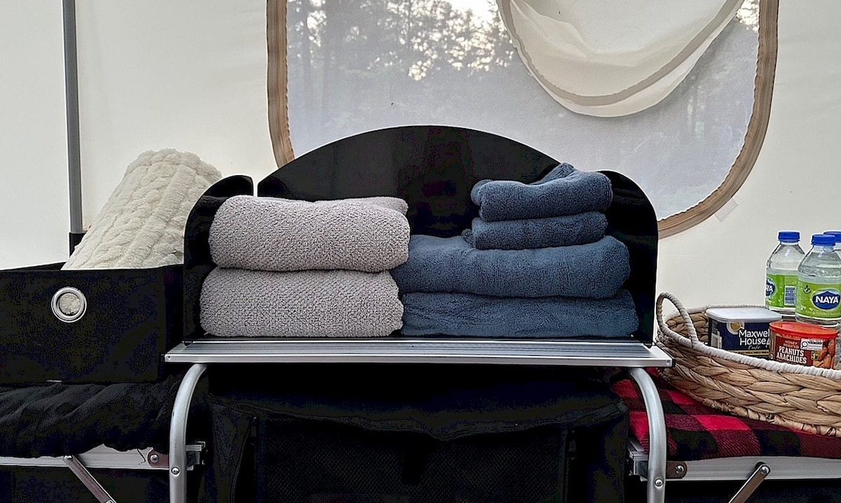 Vores safaritelt har en queensize-seng og en barneseng med madras med blød overflade og kvalitetslagner, fyrremøbler, ventilator, elektriske lys og en automatisk brændeovn. Der er en stor hævet veranda med udendørs stole og en privat indhegning med et bærbart toilet og vask. Der er ekstra badeværelser og brusere i nærheden. Spabad under stjernerne er tilgængeligt, så du kan planlægge din personlige tid. Bemærk, at gæster skal gå en kort afstand op ad bakke for at nå glampingteltene.