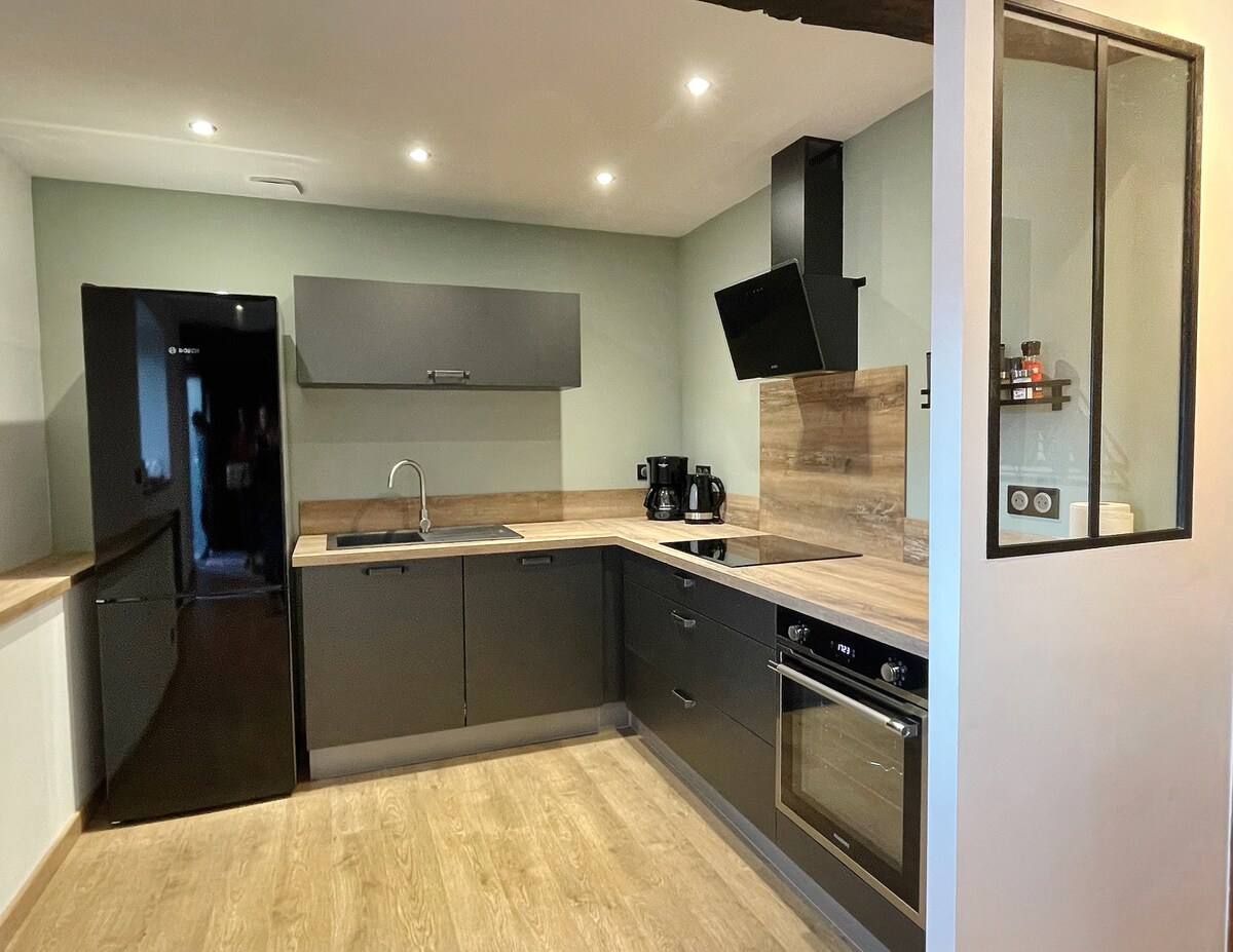 10 km fra Lourdes i en charmerende bjerglandsby, venter en smukt renoveret gammel vandmølle på dig. På 2 etager: 1 soveværelse på hemsen (1 seng på 140), en sofa, badeværelse, toilet, køkken med ovn, mikrobølgeovn, terrasse, grill, elvarme. Beliggende 40 minutter fra skisportssteder, omgivet af mange vandrestier, på vejen til Santiago de Compostela.