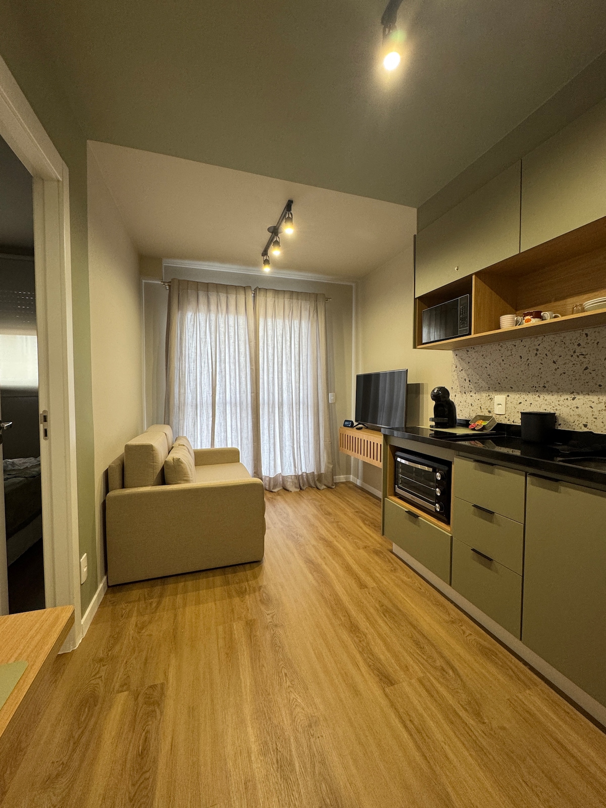 Boutique-studie i hjertet af Perdizes med et designprojekt. Brugerdefineret tømrerarbejde, signaturlæderseng, sengetøj med 500 tråde, sisaltæppe, mørklægningsgardiner, aircondition. Kurateret service af Casa Delas — alle kan købes. To håndlavede stykker fra det nordøstlige USA tilføjer sjæl til rummet. Klimakontrolleret vinkøleskab med flasker til salg, hyggelig spisekrog, oplyst glasskab og en boutique-hotelatmosfære. For ophold på syv nætter eller mere tilbyder vi morgenmad den første dag.