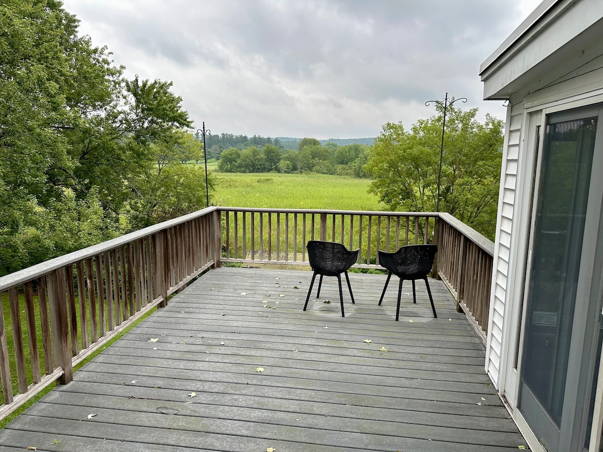 Læn dig tilbage og slap af i dette stilfulde studie! Vores hus ligger i et roligt kvarter med ældre huse omgivet af skovområder, men alligevel bekvemt placeret i centrum, en halv mile fra vores landsbygrøn (Milford Oval). En kort gåtur over floden fører dig til caféer, restauranter, pubber med livemusik, posthus, bibliotek, butikker og nyttige butikker som CVS. Uanset hvad der bringer dig... forretning, skiløb, vandreture, antikviteter, en familiefejring eller en romantisk weekend væk... vi glæder os til at være vært for dig!
