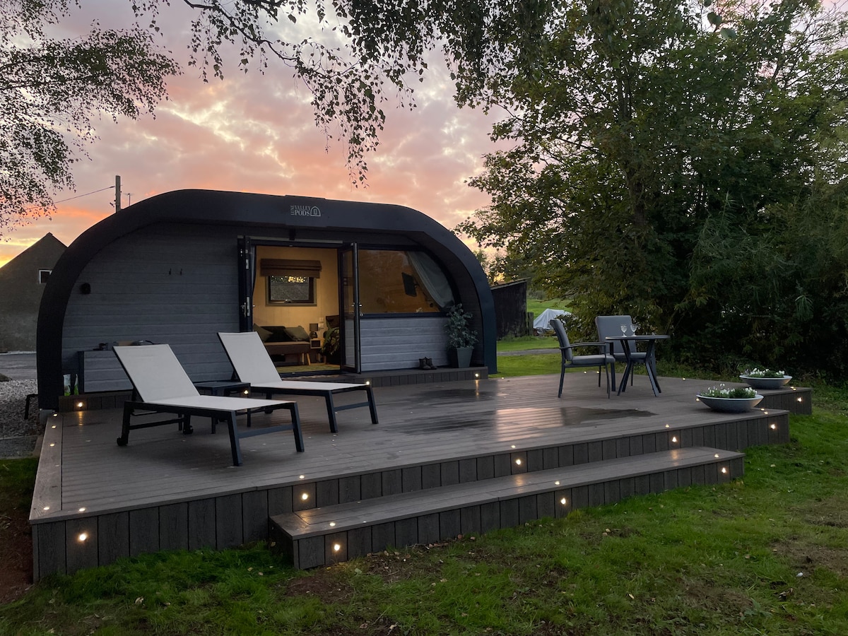 Vores glamping pod ligger på en afsidesliggende grund ved siden af en smuk privat vild svømme- og fiskesø og tilbyder en perfekt blanding af natur og komfort, så du kan fordybe dig i det store udendørs liv uden at ofre moderne faciliteter. Perfekt til par eller en udflugt for en. Du bliver de eneste gæster på stedet for fuldstændig fred og ro. Let tilgængelig for vandreture og cykelruter. Faciliteter, der er let tilgængelige med bil, herunder pubber og restauranter.
