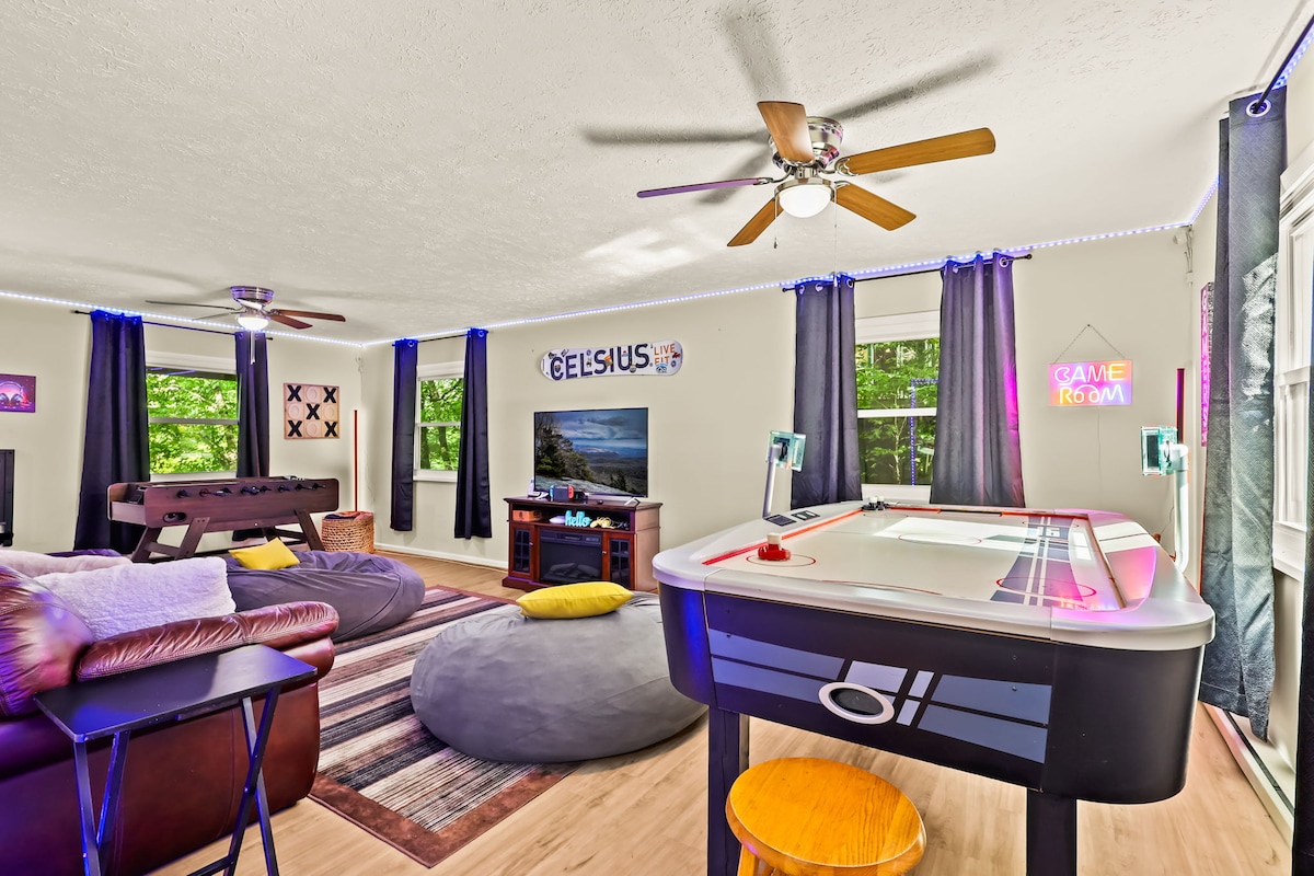Tag på ferie til Nana Patti's Mountain House, et fantastisk feriehus med 3 soveværelser og 4 badeværelser med betagende udsigt over bjergene kun få minutter fra Beech Mountain Ski Resort. Nyd et spabad, bålplads og spilrum fyldt med airhockey, pool, Xbox og meget mere. Rummelige terrasser, moderne bekvemmeligheder og hyggelige pejse gør det perfekt til efterårsferier, familieture eller bjergoplevelser. Ingen kæledyr, ingen sko indenfor (medbring tøfler). Skab uforglemmelige minder i North Carolinas High Country.