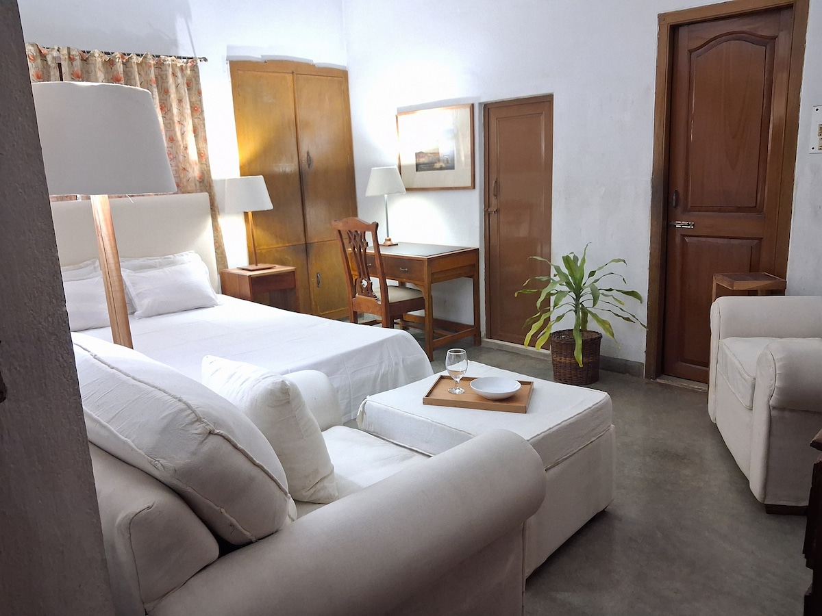 Oplev ro i hjertet af den gamle by, Santipur, i vores rummelige og fredfyldte hus. Vores rummelige værelser er et fristed fra livets byrder, der inviterer dig til at give slip og omfavne skønheden i nuet. Her, midt i naturens majestæt, bliver bekymringer ubetydelige. Giv slip på fortiden og fremtiden, og fordyb dig i roen i nuet. Oplev indre fred, der vil vare længe, efter du har forladt vores rolige fristed.