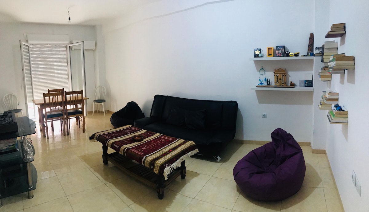 Min lejlighed ligger på femte sal i en bygning i Bejaia by . Det har en elevator og parkering reserveret til beboerne, sidstnævnte er privat og godt sikret med en port, der lukker om natten, der er en natvagt (nogle gange). Blandt fordelene ved min lejlighed: Et roligt nabolag, en smuk panoramaudsigt. Og den største fordel: Dens beliggenhed! mindre end 2 minutters gang til busstationen, hvis du ikke er kørt eller foretrækker offentlig transport!