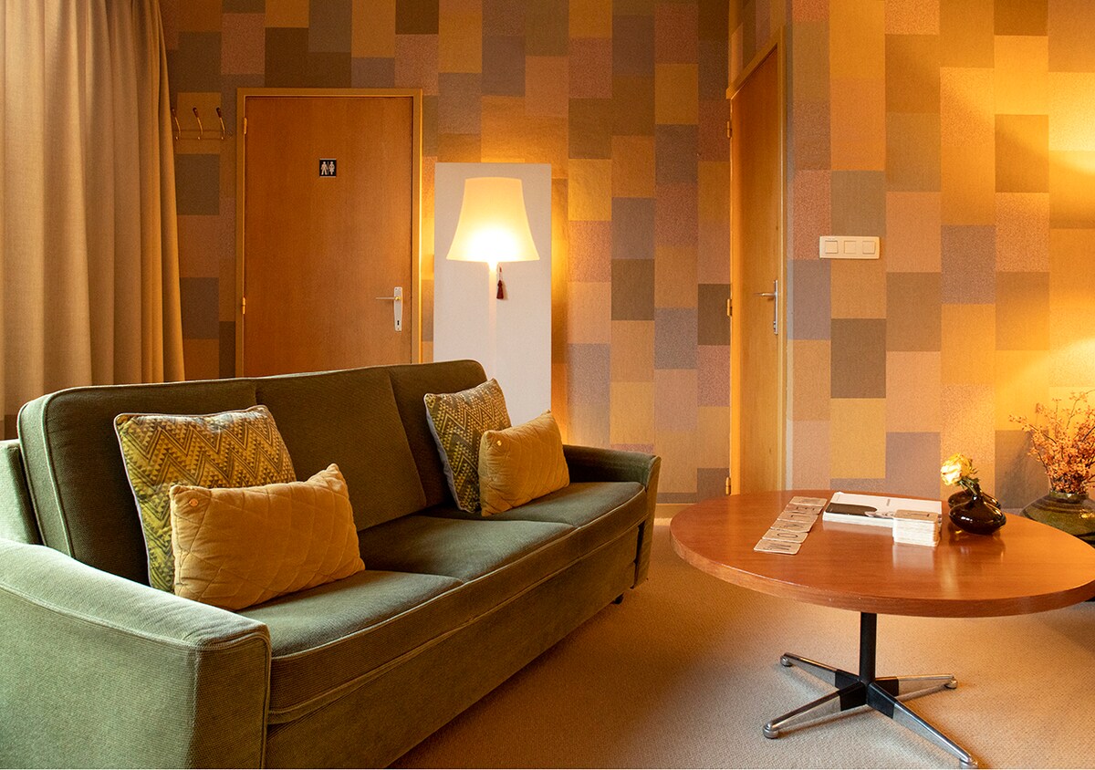 Flexible housing, unique events, food, drinks and great services with a baseline of art and culture YUST a deluxe room is a private room for 2 people with a kingsize bed. It includes a private bathroom and private toilet, a kitchen, a flat screen TV, great window view with sitting area and unique decorations per room. 35 SQM.