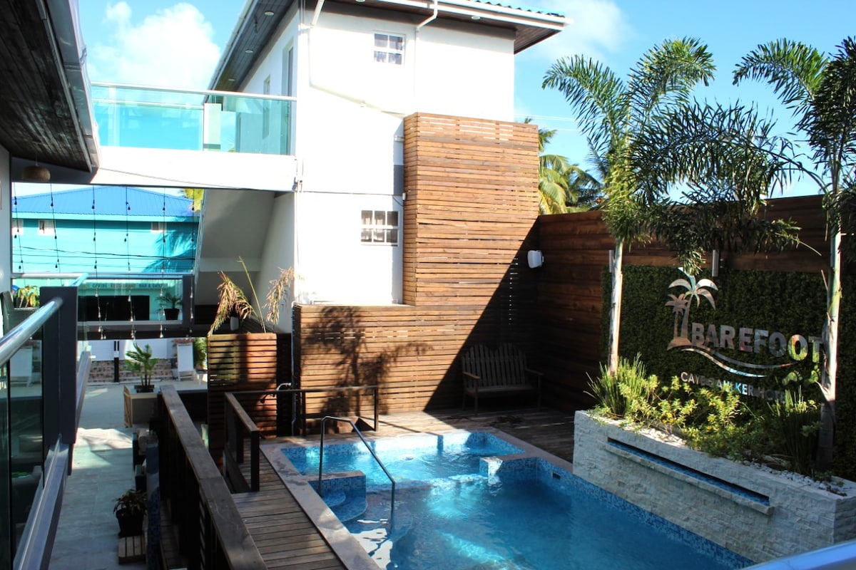 Barfodet Caye Caulker Hotel er et nyrenoveret boutique-hotel beliggende i hjertet af øens Front Street. Vores 14 luksuriøse enheder giver den perfekte kombination af hyggelige og moderne og er kurateret til at være dit hjem væk fra hjemmet. Det luftige og åbne design af vores moderne ejendom, der giver vores gæster følelsen af at være i en privat oase med den bekvemmelighed at fordybe dig i den lokale kultur og mad, så snart du forlader lokalerne.