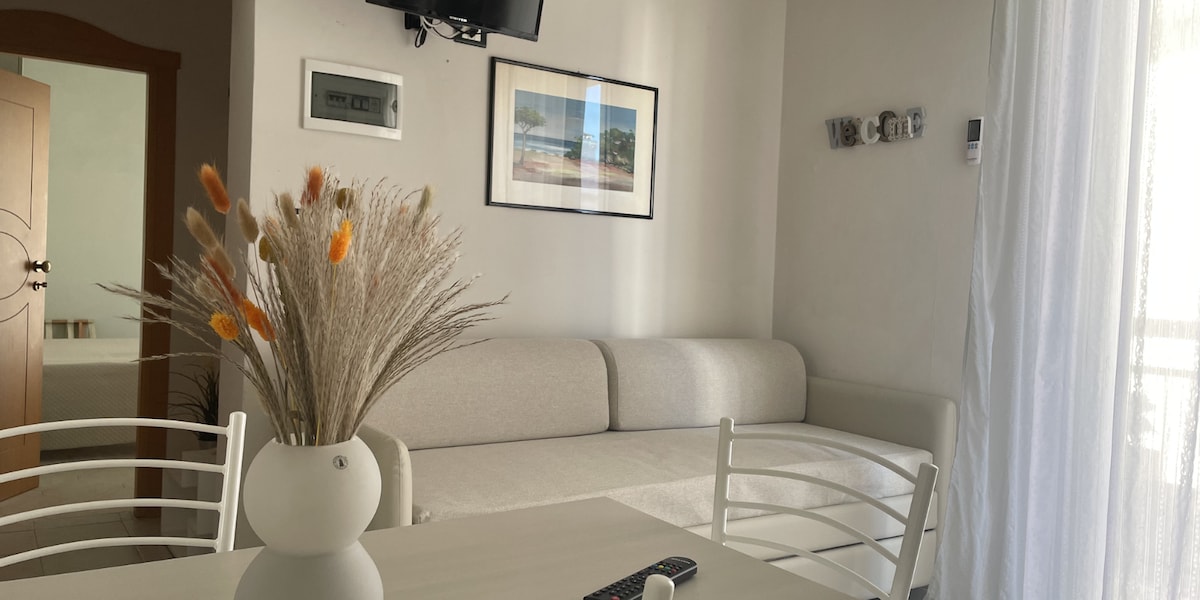 Helt ny lejlighed et par skridt fra havet, udstyret med 2 balkoner (havudsigt) og privat parkering (indhegnet), 4 komfortable senge (kan udvides til 5). Lejligheden har en stor og lys stue og et fuldt udstyret køkken. Der er to soveværelser, et med dobbeltseng, et med to enkeltsenge (den anden kan trækkes ud af strukturen). Badeværelset, der er udstyret med brusebad, har et vindue med havudsigt. Værelserne har aircondition.