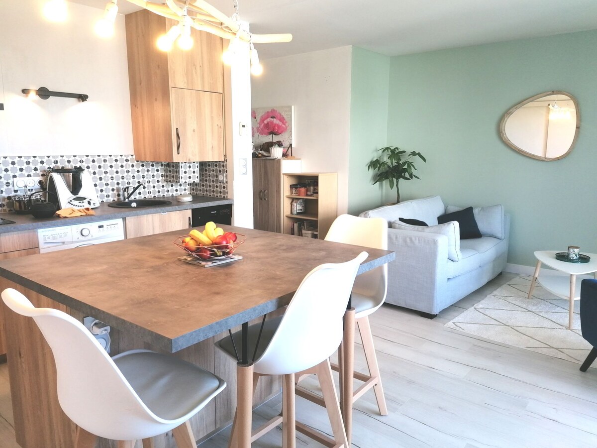 Vi har fuldstændig renoveret vores lejlighed i centrum af byen for at gøre den til et varmt og behageligt sted at bo. Alt er designet til din komfort: en indbydende stue, et udstyret køkken, et soveværelse med komfortabel sengetøj og et moderne badeværelse. Her finder du alt, hvad du behøver til et bekymringsfrit ophold: WiFi, vaskemaskine, hårtørrer ... Uanset om du er på ferie eller på forretningsrejse, vil vi være glade for at byde dig velkommen!