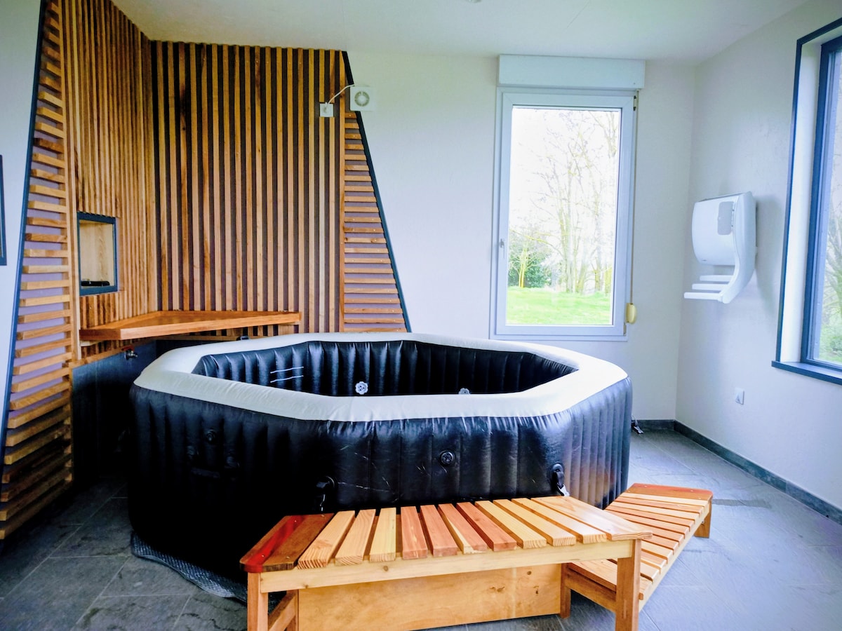 Det lille blå hus ligger 5 minutter fra Saumurs centrum og inviterer dig til en romantisk udflugt eller et fredeligt ophold som duo (2 + 1 barn muligt). Dette tufa-hus, der er typisk for området, kombinerer moderne komfort og autenticitet. Lad dig forføre af dens varme og beroligende atmosfære. Udenfor lover et boblebad "Kun til dig" dig øjeblikke af absolut afslapning. Når du ankommer, venter en flaske lokal mousserende vin på dig i køleskabet.