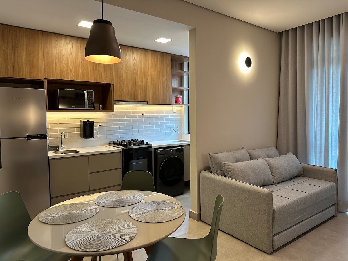 Moderne lejlighed, 32 m2, beliggende på det bedste sted i Sion. Praktisk køkken med minibar, kogeplade, tv (åbne kanaler/Netflix), aircondition, hårtørrer, elkedel og internet. Sydzonen, ved siden af Praça JK og Avenida Bandeirantes, foran et supermarked. Bygningens tagterrasse har fitnessrum, sauna, swimmingpool, opholdsområde og fælles køkken (vand, ismaskine). Rengøring tilgængelig efter behov. Sikker bygning med dørmand døgnet rundt. *Garage er ikke inkluderet.