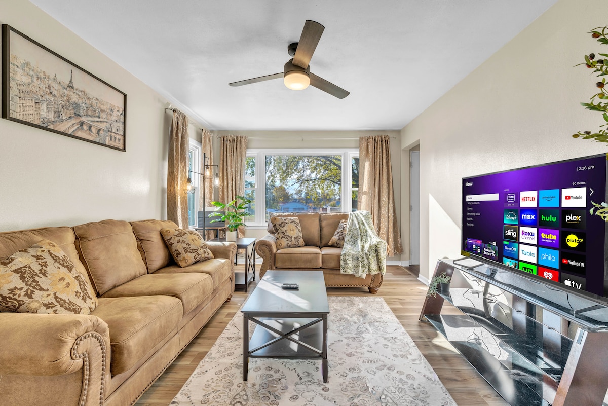 Når du rejser med familien eller på forretningsrejse, kan du slappe af i denne ranch med to soveværelser i et roligt kvarter centralt beliggende i Rockford, Illinois. Kun få minutter fra flere haver, flodsti, restauranter, golf og attraktioner i centrum. Fuldt udstyret køkken med nye apparater. Højhastighedsinternet og Roku-tv klar til dine streamingtjenester. Mange basisting til begyndere. Indtjekning mandag - lørdag er kl. 16.00. Indtjekning søndage er kl. 18.00.