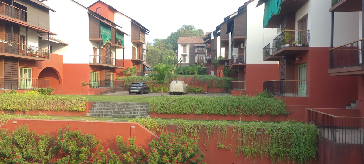 Flygt til en fredfyldt oase i denne hyggelige 1BHK-servicerede lejlighed, der er perfekt til familier eller forretningsrejsende. Dette charmerende tilflugtssted ligger kun 3 km fra Dabolim International Airport i en frodig kokoslund omgivet af maleriske bakker. Kun en kort gåtur væk finder du fantastiske Hollant Beach, der er ideel til solbeskinnede dage og afslappende aftener. Du er velkommen til at sende os en besked på IG på @theprismostays. Oplev komfort og ro i dette skjulte paradis. Din perfekte smuttur venter!