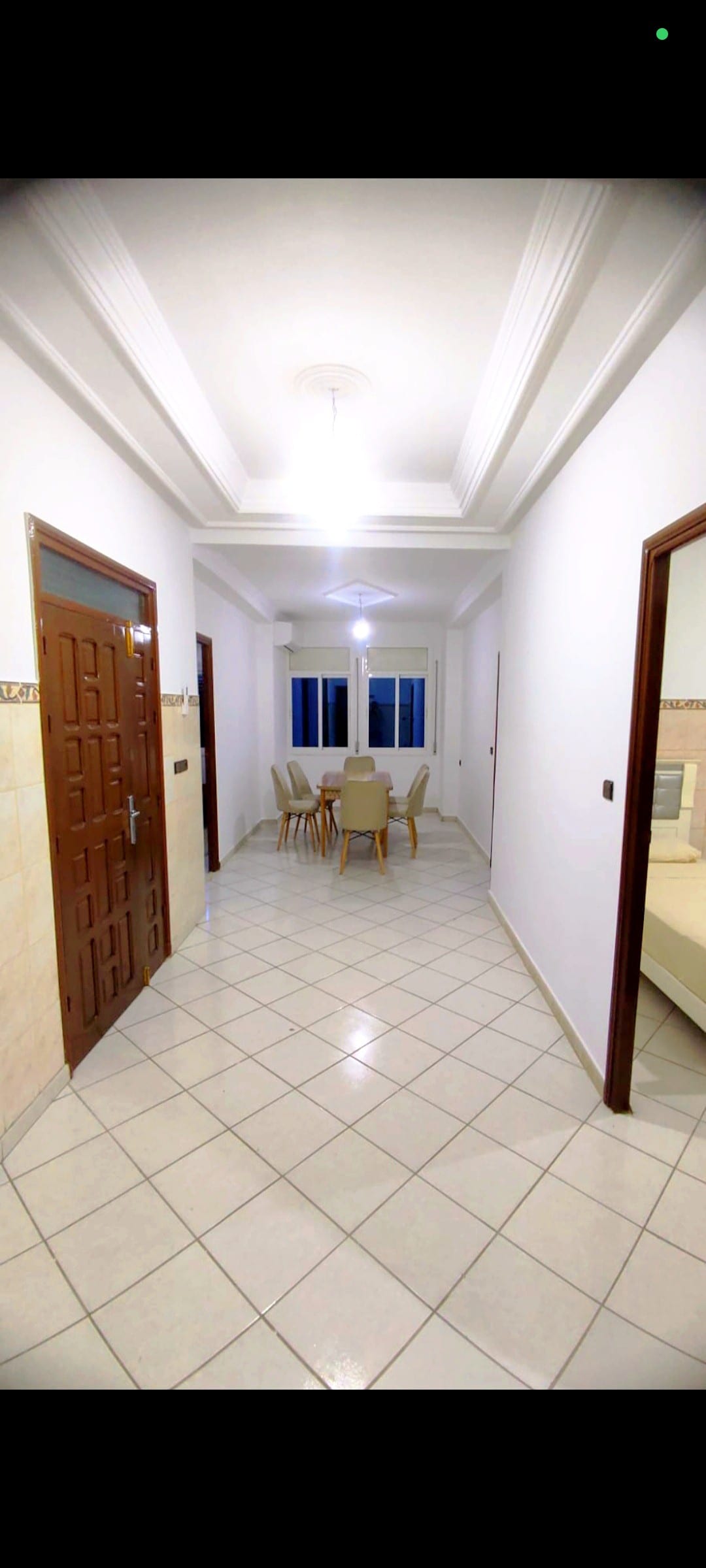 Profitez d'un logement élégant et central. L'appartement se situe dans un immeuble tout neuve. Construite en 2024.. Dans le chic quartier El matar à Nador en face de l'ecole ARRISALA.. Il y'a le minimarket BIM au bas de l'immeuble... Entourée de plusieurs commerces.. Mosquée.. Pharmacie.. Opticien.. Cafés.. C'est un logement idéal aux jeunes couples ( strictement mariés selon les lois marocaines).