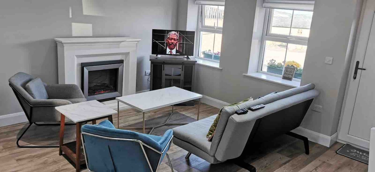 - Tag til Lorraine's Loft – en moderne lejlighed med fantastisk udsigt over landskabet. - Tilføj vores fødselsdag, jubilæum eller romantikpakke for at få et særligt præg! Tilgængelig på anmodning. - Glid ind i hyggelige kåber og slap af med ubegrænset brug af vores store, førsteklasses spabad. - Privat indgang, stor overdækket terrasse, balkon. - Tæt på Cookstown's butikker og restauranter, men alligevel fredeligt og afslappende. - Fuldt køkken til hjemmelavede måltider, eller bestil take away fra en lokal favorit. - 55" tv med Netflix, Disney + & Prime Video.