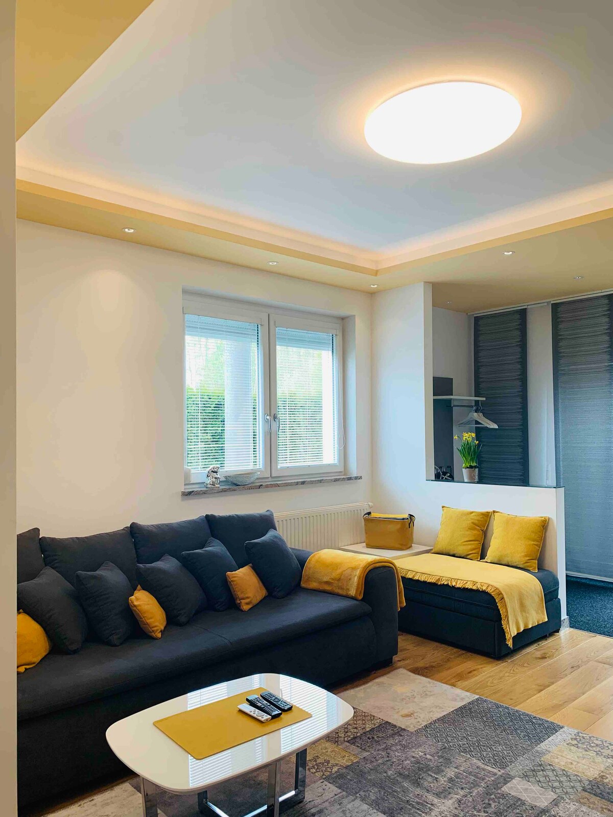 Modern 160 m² house with a residential unit on the 1st floor with a great view of the Alps, right on the outskirts of the top tourist destination Salzburg. The wonderful Salzburg lake area is approx. 20 minutes away. The world famous Salzkammergut is only 25 minutes away. The guests use the house completely alone. A large balcony invites you to enjoy the sunset. The garden invites you to play or relax and is protected from the eyes of the barn by a large hedge.