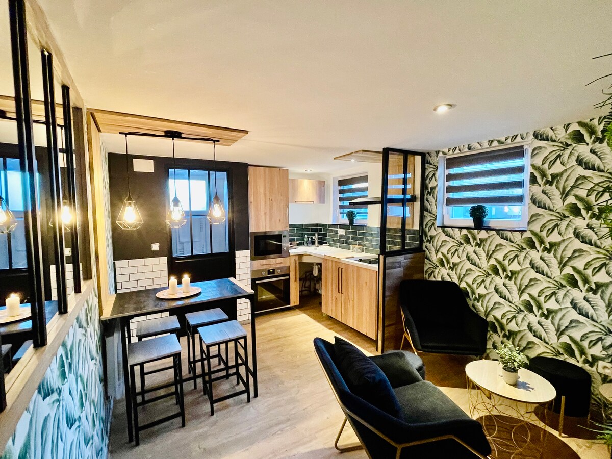 Studio paisible en souplex – confort moderne & ambiance zen Profitez d’un séjour tout confort dans ce studio paisible situé en souplex (demi-niveau en sous-sol), parfait pour une escapade à deux ou un déplacement professionnel. L’appartement bénéficie d’un chauffage au sol, d’une douche spacieuse, de toilettes japonaises et d’un lit queen size confortable pour un repos optimal. La pièce de vie est dotée d’un éclairage d’ambiance personnalisable par télécommande, créant une atmosphère relax