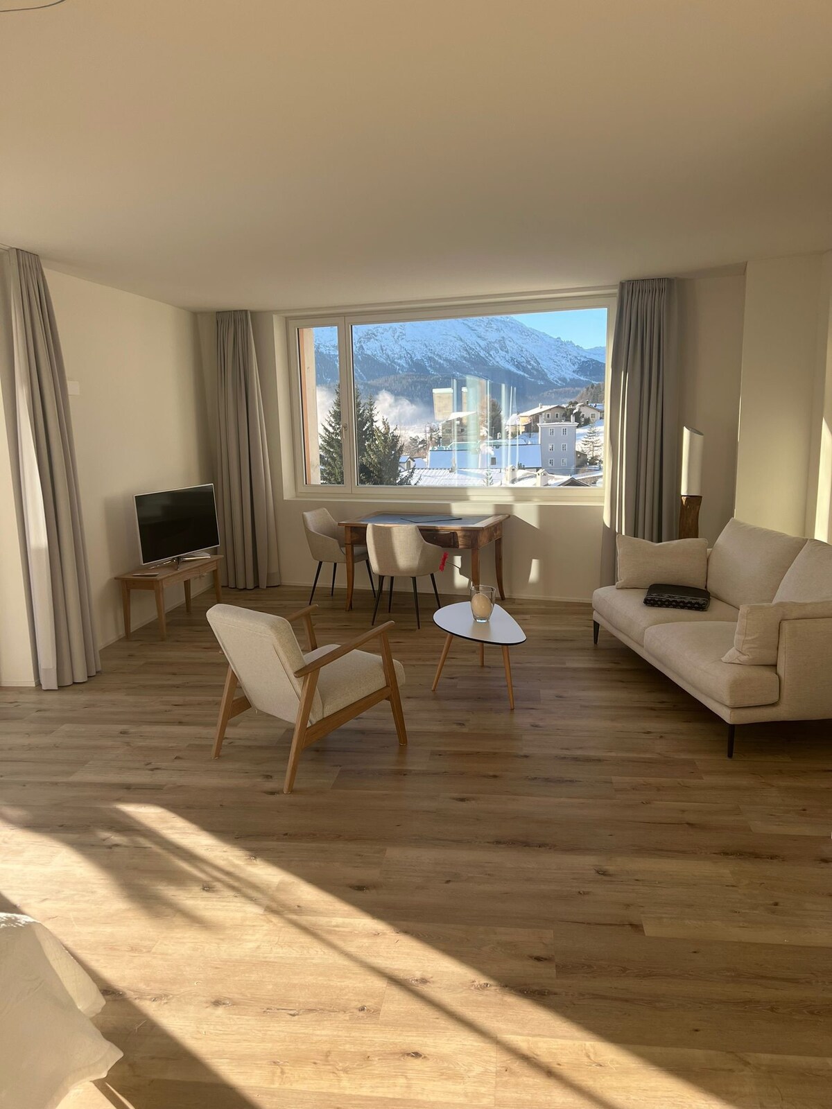 Den rummelige lejlighed med udsigt over Engadiner Alpenpanorama ligger på en skråning i Samedan. - Busstation, togstation, landsbyens skilift, termiske bade og indkøbsmuligheder ligger inden for 10 minutters gangafstand. Lejligheden blev bygget i 2022 i moderne stil: - Den har et lille køkken og et rummeligt badeværelse. - Brug af pejsen, en udendørs siddeplads og en garageplads er inkluderet. - Opbevaring af ski og sportsudstyr i kælderen.