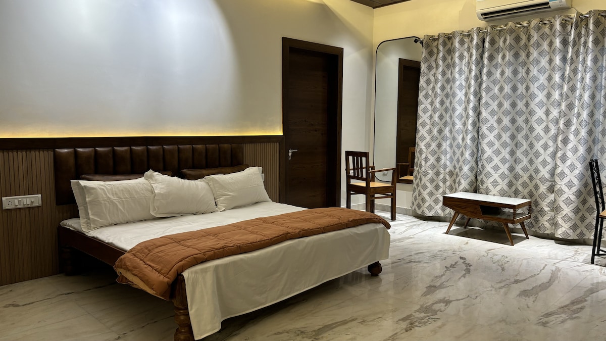 contemporary designed with comfortable beds , near AIIMS , park facing , silent environment, home away from home, we can accommodate 30 plus guest in our 20 rooms and a top floor hall as well