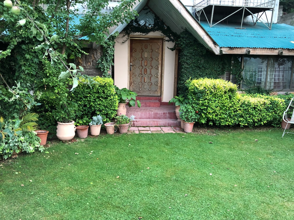 Fredfyldt hytte på øverste etage i Changla Gali med 2 soveværelser med tilhørende badeværelser, en hyggelig stue, stilfuldt åbent køkken, privat trætopshus, grillplads og to frodige haver. Inkluderer en privat indgang, gratis parkering og en rolig, central beliggenhed - perfekt til par, familier eller små grupper, der søger en naturskøn, sikker og fredfyldt bjergferie. Nyd natur, komfort og uforglemmelig udsigt på én gang. Trætopshuset er perfekt til læsning, te eller stjernekiggeri.