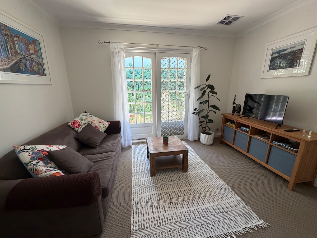 Nyd det simple liv i dette fredelige og centralt beliggende baghus. Du skal bo i den bageste halvdel af vores hjem, i en helt selvstændig lejlighedsstil. Kun en kort gåtur til Swan River og stier gennem populære Pt Walter & Bicton Baths. Busstoppestedet er lige rundt om hjørnet, til Perth og Fremantle, eller i AFL-sæsonen er Event-bussen kun 10 minutter væk, og den tager dig direkte til Optus Stadium. Alt, hvad du behøver til dit korte ophold i en smuk del af Perth