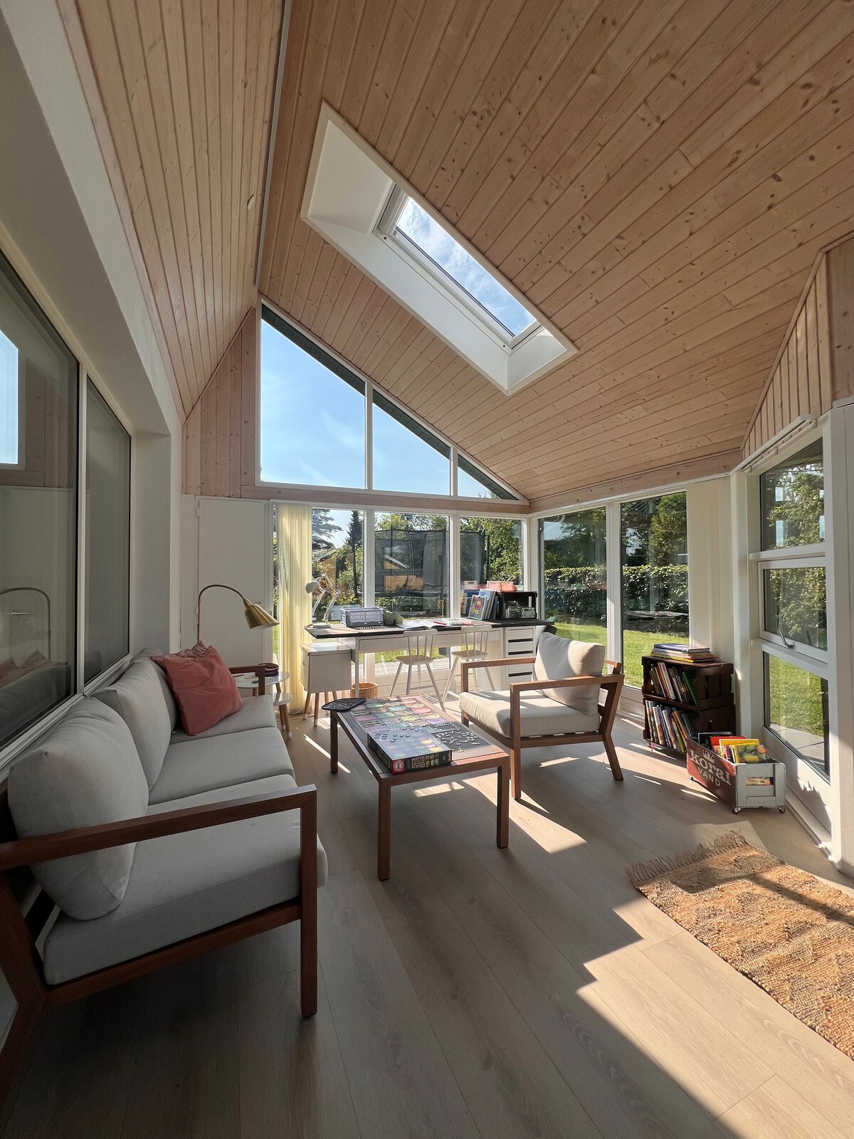 Slap af i komfortabel hytte i egen lille skov af gamle træer lige ned til den smukke sø. Det fredelige private paradis ligger kun 20 minutter fra Legoland. Og bænken ved stuens spisebord er fuld af Lego Duplo ;) Den overdækkede terrasse med daybed, den nye brændeoven, det lynhurtigt internet og det store smart TV -sørger for ferie i alt slags vejr! Store og små vil elske at komme her hjem efter en hektisk dag i parkerne.
