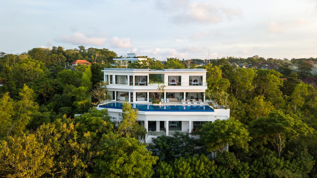 Swim over to the sunken lounge in the pool to freshen your drink, all while enjoying endless ocean, canopy, and volcano-views at this hilltop home in Bali. Embrace your Bohemian-side, living a life of top-notch barefoot-luxury. Wander seamlessly from inside to out, rejuvenating your soul with fresh coastal air. Then, head out for a yoga session on the sand at Karma Beach Club. Across a stone bridge, over a koi and water filled rock pond, Villa 360 Bali awaits. Not just an entrance, the bridge is the perfect serene setting to catch up on some reading, sip herbal tea, or plan out a day of sightseeing. Inside, tranquil vibes continue with minimalistic white-walls and marble floors displaying natural wood furnishings. Frame-less windows can be found throughout, showing off the gorgeous views of Bali. If you’re keeping up with a fitness routine, the exercise room and infinity pool will keep you busy. And, the cozy rooftop lounge is the perfect spot to celebrate a productive day, sipping local wine as the sun sets over the ocean. The next day, hit the links at New Kuta Golf, 5 kilometers for home. After your round, cool off on the beach, Balangan, Pandawa, and Jimbaran are all within 10 kilometers. If you’re looking for an adventure with the kids, Bali Zoo and Bali Safari Marine Park are both about 40 kilometers. And, you’ll find plenty of restaurants along the coast in Kuta. Copyright © Luxury Retreats. All rights reserved. BEDROOM & BATHROOM • Bedroom 1 - Primary : King size bed, Ensuite bathroom with stand-alone rain shower & bathtub, Dual vanity, Walk-in closet, Television, Safe, Shared access to wrap-around balcony, Ocean views • Bedroom 2: Queen size bed, Ensuite bathroom with stand-alone rain shower, Safe, Shared access to wrap-around balcony, Ocean views • Bedroom 3: Queen size bed, Ensuite bathroom with stand-alone rain shower, Safe, Shared access to wrap-around balcony, Ocean views • Bedroom 4: Queen size bed, Ensuite bathroom with stand-alone rain shower, Walk-in closet, Safe, Direct access to terrace, Outdoor furniture, Garden view • Bedroom 5: Queen size bed, Ensuite bathroom with stand-alone rain shower, Safe, Shared access to wrap-around balcony • Bedroom 6: Queen size bed, Ensuite bathroom with stand-alone rain shower, Safe, Shared access to wrap-around balcony FEATURES & AMENITIES • Wine cooler OUTDOOR FEATURES • Koi pond • Waterfall • More under “What this place offers” below Included: • More under “What this place offers” below Extra Cost (advance notice may be required): • Activities and excursions • More under “Add-on services” below