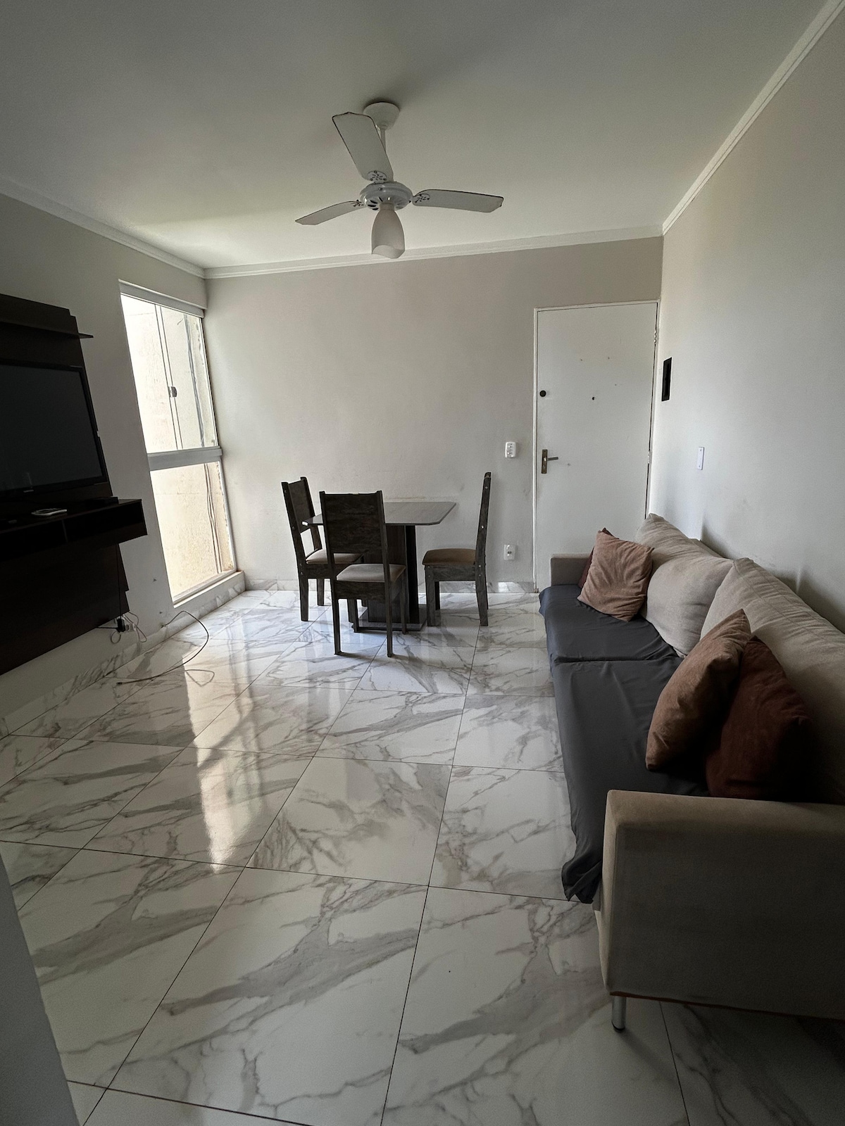 Apartamento ligger i Residencial Manuela-kvarteret, kun 800 m fra Mané Simpatia. Tæt på Euclides Miragaia Avenue og tæt på Marechal Rondon Highway. 🛏️ 2 soveværelser med hyggelige loftventilatorer 🚿 1 komplet toilet 🍽️ Køkken udstyret med basisting til at tilberede dine måltider 🛋️ Værelse med tv og ventilator. 🌿 Altan med en varm brise sidst på dagen 🧺 Tøjvask for nemheds skyld 🚗 Garageplads til 1 bil 📍5 minutter (i bil) fra byens centrum.