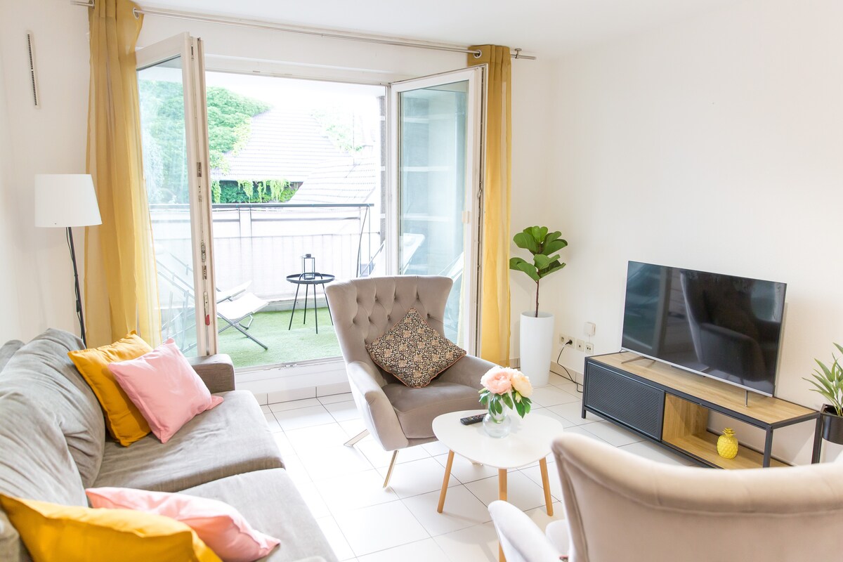 Smuk lejlighed med 2 soveværelser beliggende i "Vieux Schiltigheim". Du kan komme til Strasbourg centrum på 11 minutter med sporvogn, til Wacken forretningskvarter (mindre end 10 minutters gang), til det europæiske forretningsområde på 10 minutter i bil. Gratis privat parkering/4k 140 cm tv - Netflix og Amazon Prime-abonnement inkluderet Husets basisting vil blive stillet til rådighed: udstyret køkken (induktionskomfur, opvaskemaskine, ovn, brødrister, kedel), sengetøj, toiletartikler osv.
