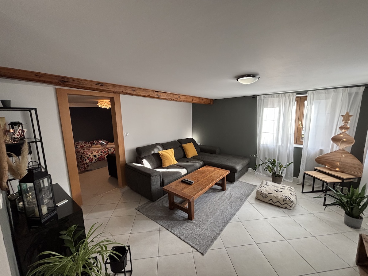 Dejlig lejlighed nær Strasbourg, perfekt til en romantisk ophold og for partnere, der kan lide at overraske og tage sig af hinanden! ✨ Masser af små opmærksomheder til kærlighedens smag og noter af sensualitet og frem for alt venlighed! Alt vil blive gjort for at gøre dette ophold ideelt for dig og din partner! Privat parkeringsplads med fjernbetjening 🅿️ Let tilgængelig med bus 🚌 Espressomaskine og teboks inkluderet ☕ En flaske crémant til at byde dig velkommen 🍾