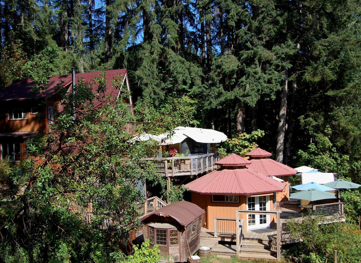 Vi ligger 2 miles fra indgangen til Mary's Peak rekreationsområde, det højeste sted i kystområdet. Om vinteren er der normalt adgang til sne, kun 15 minutters kørsel fra vores hytte til toppen af Mary's Peak. Alsea Falls ligger 25 minutters kørsel væk. Kystbyen Waldport ligger 45 minutters kørsel væk, Oregon State University ligger 20 minutters kørsel væk, og University of Oregon ligger 1 time syd for os. Hytten ligger på vores private ejendom, hvor vi også bor.