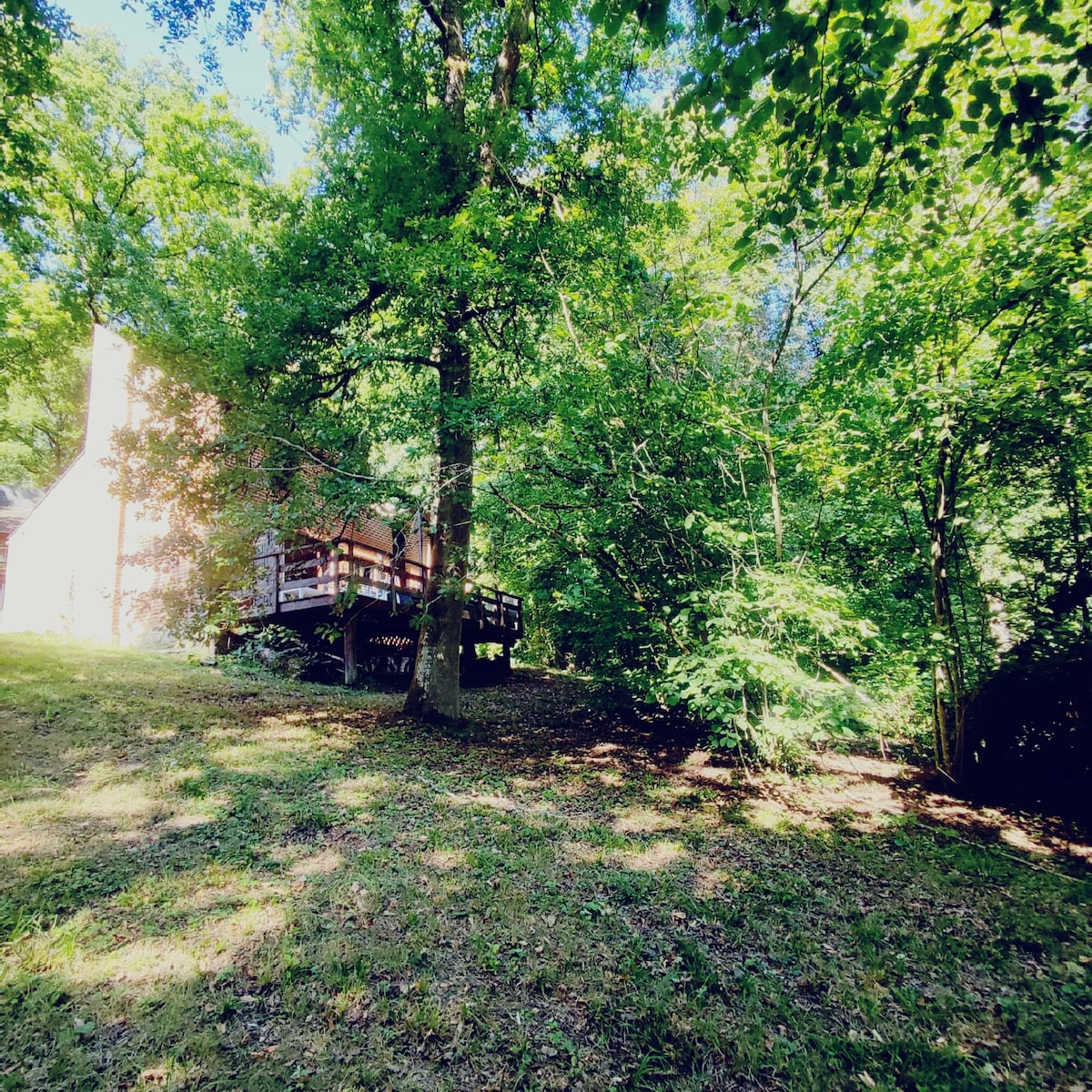 Beliggende i enestående omgivelser midt i dyrene, vil livet stoppe i 1 øjeblik for at få dig til at nyde denne unikke bolig al komfort. Dobbelt hytte beliggende forbundet med 1 gangbro skjult fra udsigten (1 hytte chbre og 1 sal/køkken/sdb) Beliggende ved portene til de belgiske Ardenner på 200 m over havets overflade midt i skoven 10 minutter fra butikkerne mellem Namur og Dinant. Oplev skoven ved at gå til Restaurant 7Meuses, en 15-minutters gåtur gennem skoven, 1des +smuk udsigt i Wallonia. Afslappende gåtur