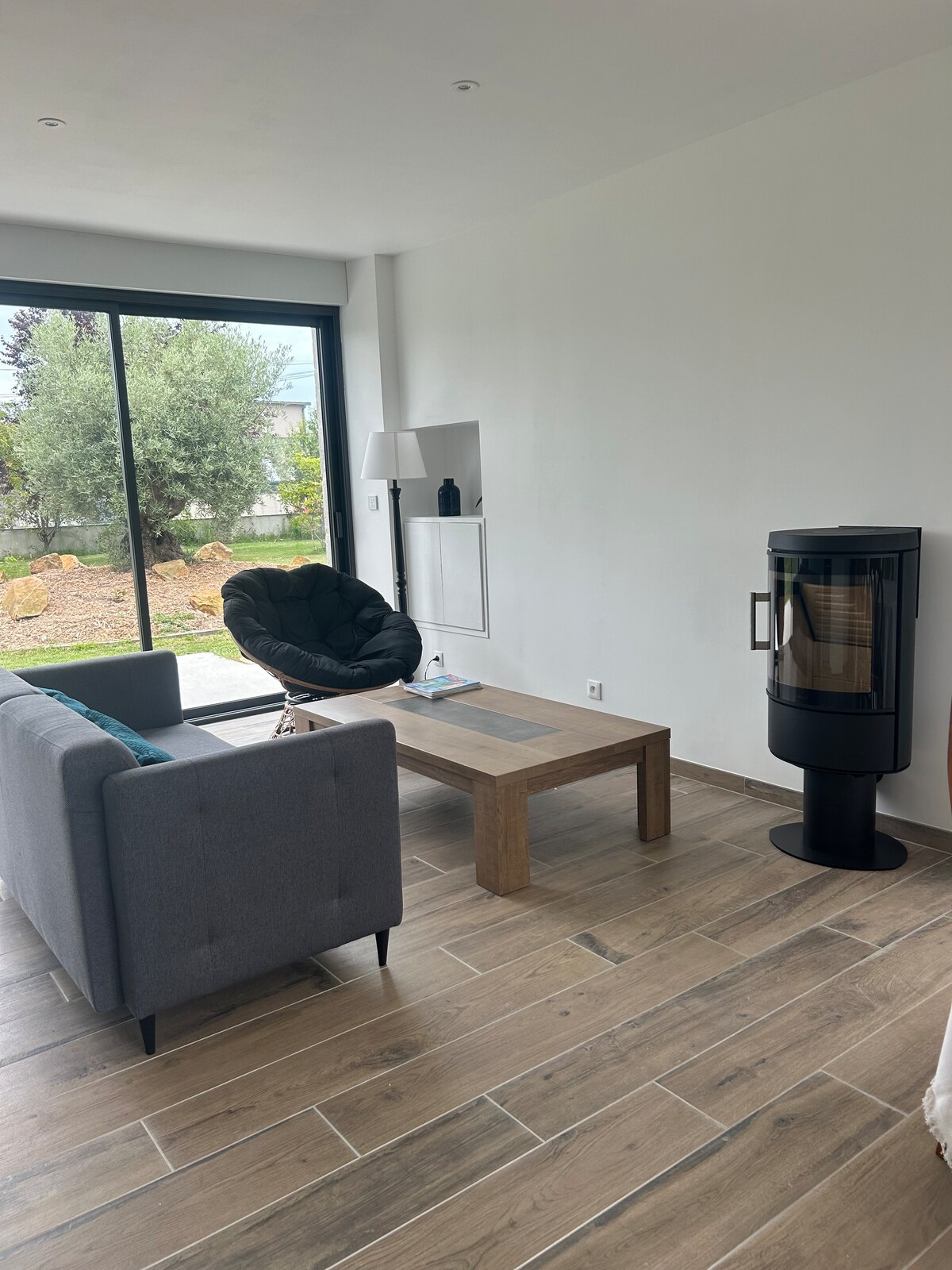 Smukt træhus på 50 m2, meget lyst og beroligende wi-fi (fiber). Tilgængelig for bevægelseshæmmede. HUSET - Åbent køkken udstyret (LV, LL) - Stue: TV med Netflix, sydvendt buet vindue, der åbner ud til en terrasse, behagelig fast ramme med bænk mod øst - Soveværelse: queensize-seng 160x200 eller 2 senge 80x200 (nyt sengetøj), kontorplads - Badeværelse: Stort italiensk brusebad (160x90) 1 km fra havet og de berømte hytter, og 1 km fra butikkerne.