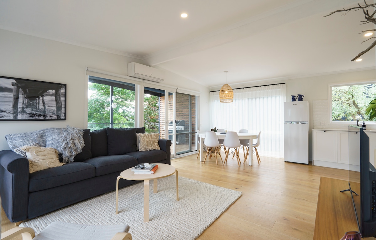 I hjertet af Sorrento tilbyder denne renoverede, hyggelige lejlighed en fredelig ferie. 8 minutters gang fra den majestætiske Sorrento Back Beach. 5 minutters gang til hovedbutikken i Sorrento og restauranter, kan du nyde en ferie til fods. Der er lige blevet installeret et nyrenoveret køkken med kogeplade, mikrobølgeovn, køleskab, vaskemaskine og tørretumbler. SeaEsta er indrettet i luksuriøs Hamptons-stil med to stille terrasseområder, hvor du kan sidde og slappe af.