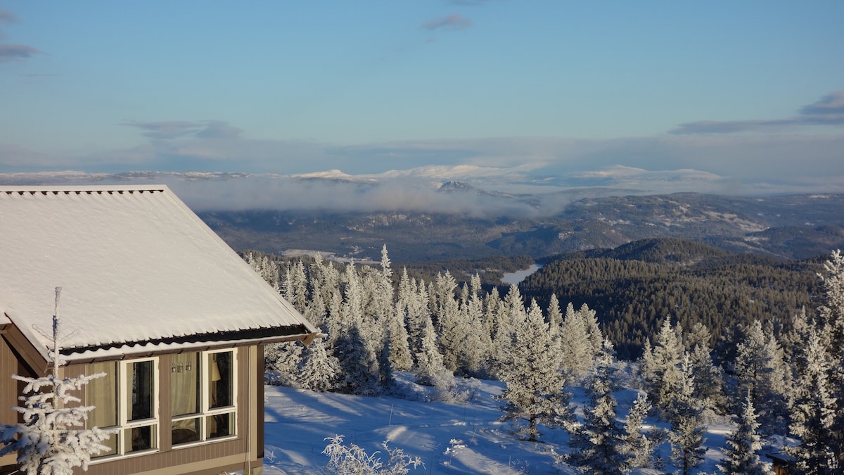 Panoramahytte med jacuzzi og sauna/nær Norefjell
