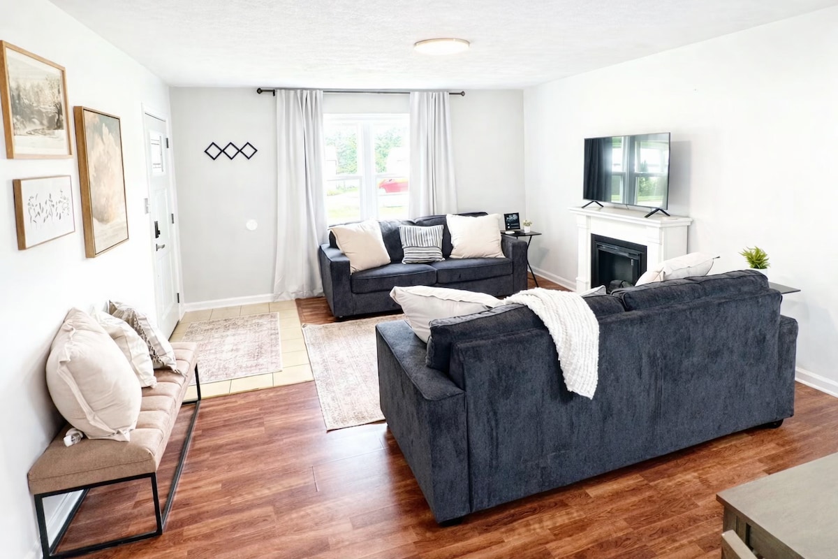 A spotless, spacious home designed for comfort and ease — ideal for groups, families, and long or short stays near IU. Guests consistently mention the immaculate cleanliness, super-comfortable beds, oversized sectional, and chef-level kitchen that makes cooking and gathering easy. Everything is intentionally stocked and ready so your stay feels smooth from the moment you arrive. Located minutes from IU, downtown, dining, parks, and Kroger — close to everything, without the hassle.