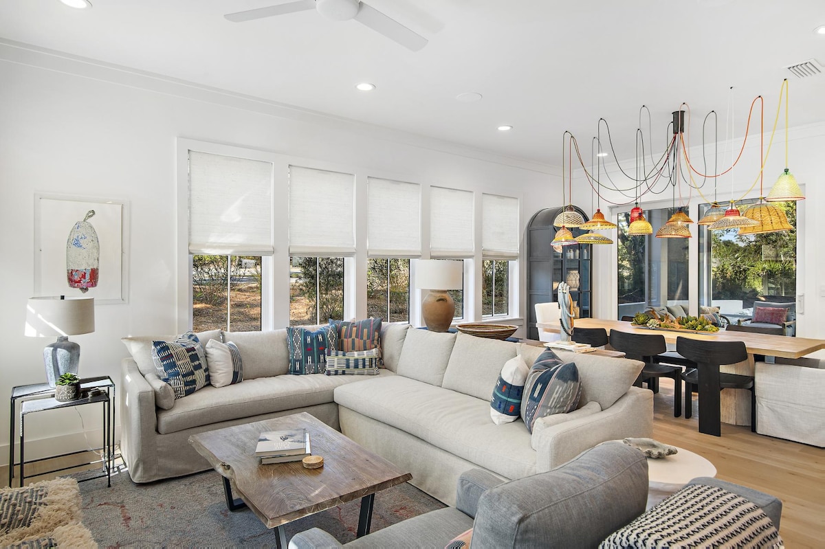 Fordyb dig i den populære livsstil ved havet i 30A. Trin til stranden og en fornøjelig gå- eller cykeltur til restauranter og caféer ved havet. ✯✰Cykler, 10 fods paddleboard, boogieboards, strandparasol og stole ✰✯ ✔ Perfekt beliggende lige på 30A, kun få skridt til stranden. ✔ Fuld refusion tilgængelig én dag inden ankomst. ✔ Fuldt udstyret køkken ✔ Pool ✔ Hurtig Wi-Fi med arbejdsplads ✔ Praktisk nøglefri adgang ✔ 60” smart-tv ✔ Indendørs elektrisk pejs ✔ LED-belysning Minutter til Seaside