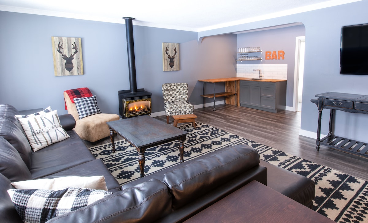 Perfekt til din næste familiesammenkomst eller parretreat, vores renoverede chalet kan rumme op til 10 personer og har et komplet køkken, 2 komplette badeværelser, 4 soveværelser og 2 sammenklappelige enkeltsenge, opdateret med moderne inventar og møbler. Chalet er den perfekte blanding af komfort og karakter. Nye armaturer og apparater blandes smukt med rustikke detaljer, der føles varme og indbydende. Beliggende i et roligt lokalsamfund beder vi om, at der ikke er fester eller arrangementer