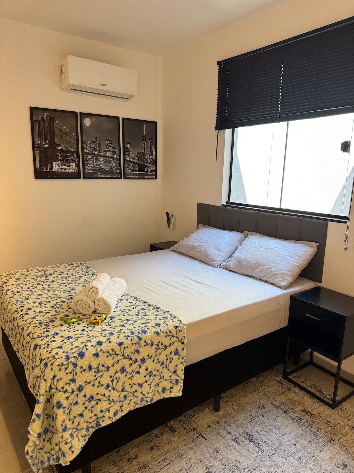 Lejlighed af høj standard 5 minutter fra Vila Germânica, indkvartering for familier og ledere, der ønsker komfort og ro. 50 meter fra et bageri og en nærbutik og 900 meter fra et supermarked, et apotek og restauranter. Dobbeltruder med fremragende akustisk komfort og et solrum i stuen. Split-klimaanlæg på alle værelser! Elektrisk kaffemaskine, Airfry, sandwichmaskine, mikrobølgeovn, ovn, glas til vin og mousserende vin. 43”-tv med Alexa, Netflix og Amazon Prime