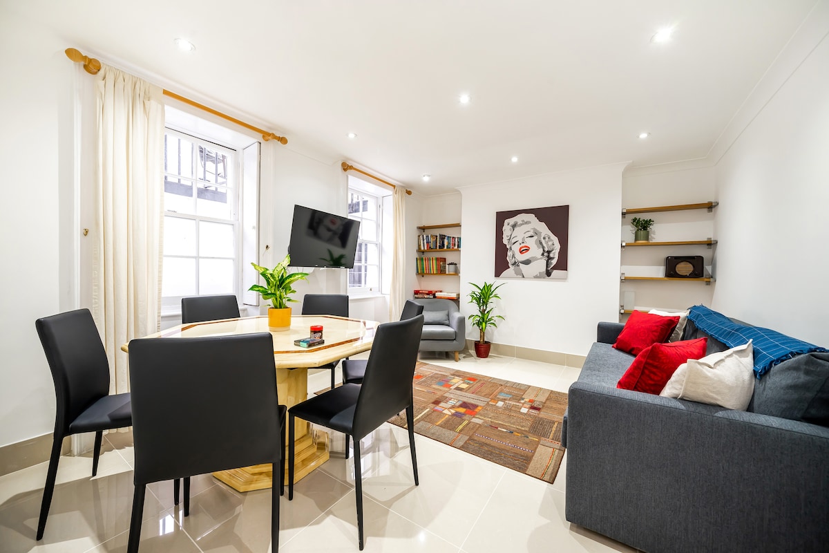 Denne stilfulde lejlighed med 1 soveværelse📍 ligger i hjertet af Marylebone, kun 5 minutters gang fra Baker Street Station og 2 minutter fra Marylebone Station, og tilbyder en perfekt blanding af varme og moderne faciliteter. Fuldt udstyret, køkkenudstyr, en hyggelig seng og en sovesofa giver en fredfyldt oase midt i byens summen. Den rummelige, indbydende bolig er ideel til afslapning, kun få skridt fra ikoniske attraktioner som Sherlock Holmes Museum og Madame Tussaud's🌟💖