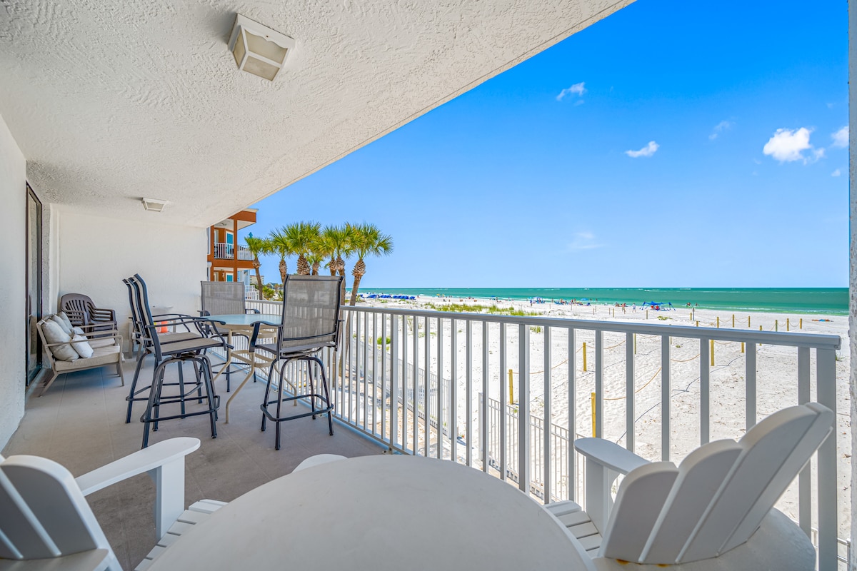 Fantastisk lejlighed ved stranden, der for nylig er blevet ombygget på anden sal. Vinylplankegulv overalt, ingen TÆPPER. To soveværelser, to badeværelser. Helt uhindret udsigt over stranden. Det ligger centralt mindre end 1,5 km fra World Famous Johns Pass. Nyd betagende solnedgange fra din stue med vandet kun få meter væk. Lejligheden ligger inden for gåafstand til shopping, bank og mange restauranter og barer.