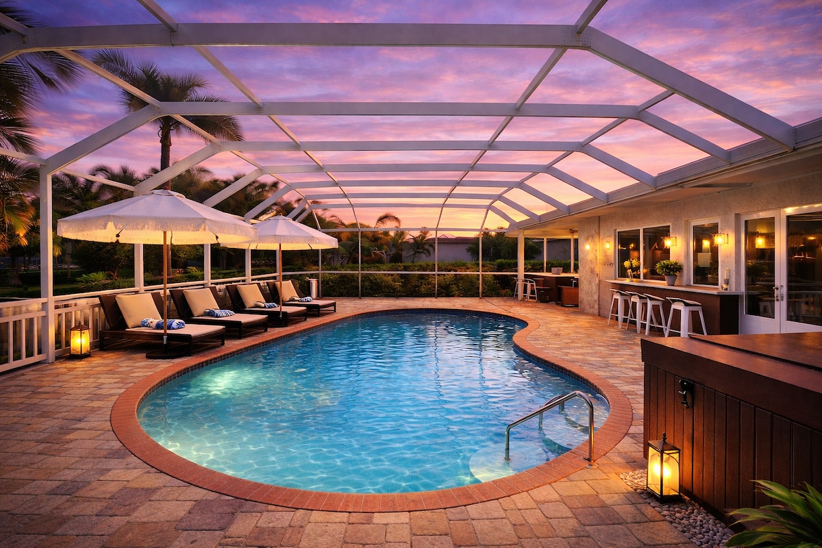 Velkommen til Seminole Shores Villa, din tropiske spa-oase på 223 kvadratmeter! Denne ejendom er en 4BR-bolig med masser af faciliteter, der gør dit ophold virkelig mindeværdigt. Selvom strande ligger tæt på (<5 min.), vil du måske aldrig forlade den opvarmede saltvandspool, der ligger i en kæmpe spa-lignende baghave, som tilbyder masser af privatliv og aktiviteter. Dette hus blev fuldstændig renoveret i 2023 for at indarbejde et tropisk design. Vi har prioriteret et rent og sikkert miljø som en del af din oplevelse.