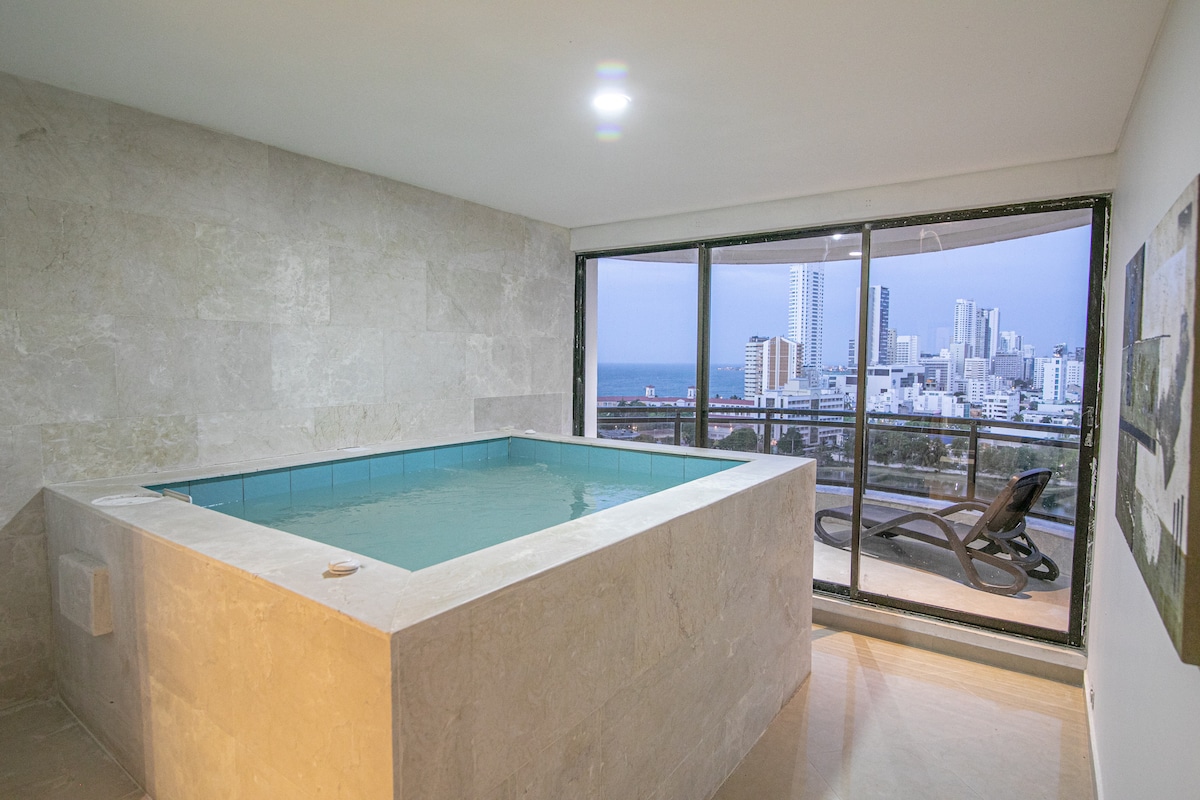 Flygt til dette fantastiske designerloft i hjertet af Cartagenas historiske by, en perfekt blanding af moderne luksus og kolonial charme. Beliggende kun få skridt fra La Serrezuela, Plaza San Diego og byens bedste spisesteder, herunder ikoniske steder som Juan del Mar og Cande, placerer dette loft dig i centrum af Cartagenas pulserende kultur.
