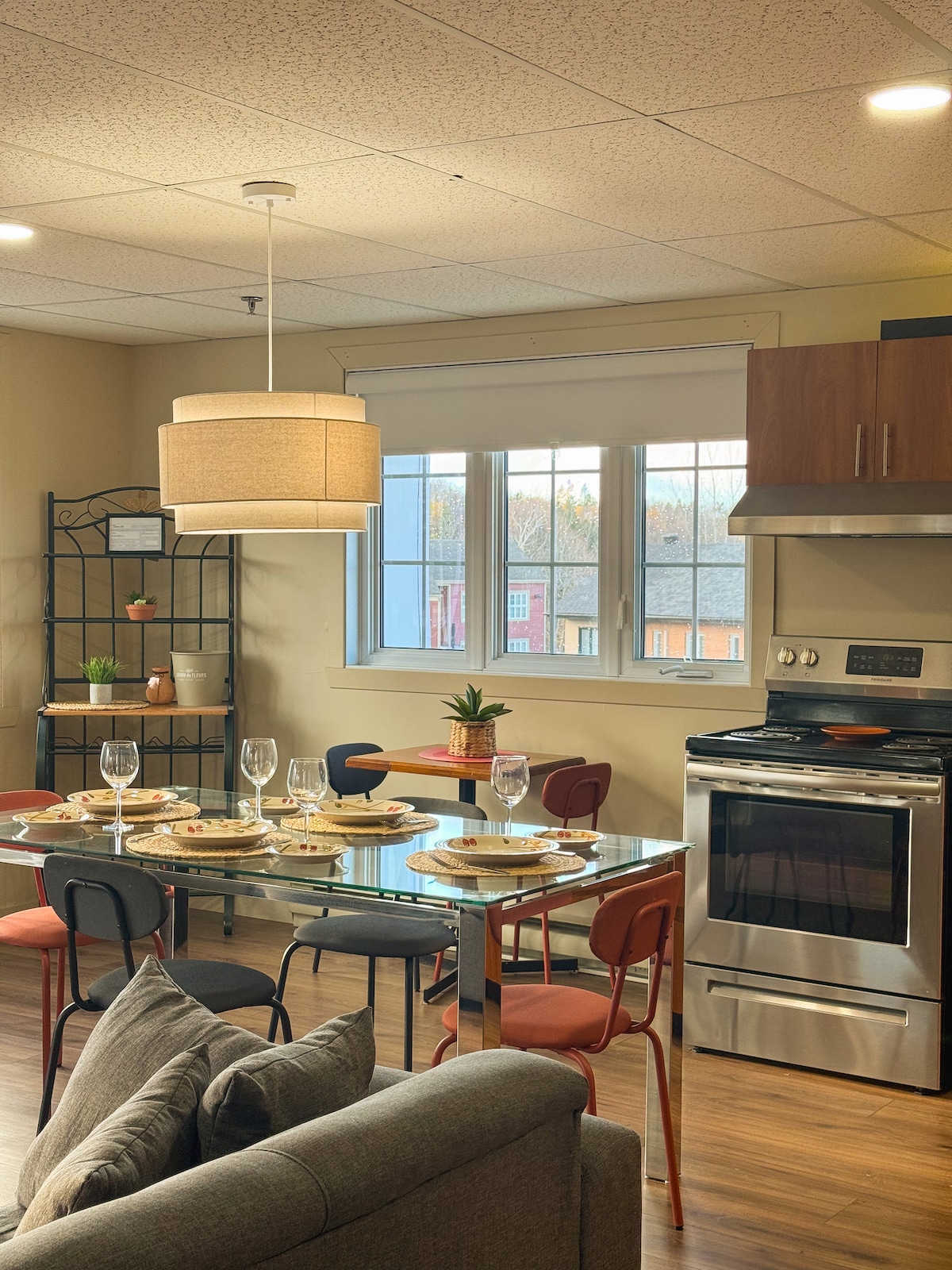 Perfekt bolig til par, solorejsende, forretningsrejsende og firbenede venner! Fantastisk panoramaudsigt over St. Lawrence-floden og Île d'Orléans. Alt er airconditioneret med Wi-Fi og 50" smart-tv. Privat terrasse med udsigt over floden. Kan rumme 2 personer (+ en dobbelt sovesofa og mulighed for at leje 2 tilstødende boliger med en kapacitet på 4 til 6 personer).