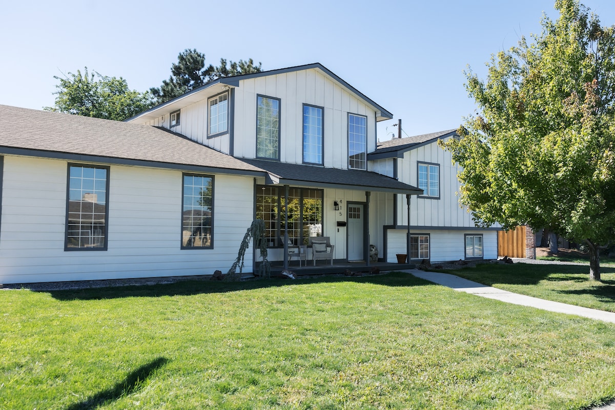 Ideal location for your visit to Boise. Updated home with ALL NEW furnishings, central location, 2 minutes to BSU campus & stadium, 9 minutes to airport, 2 miles downtown and quick bike ride to the Boise River Greenbelt. Entertain in the comfortable living room, huge covered back deck with new 60" TVs and brand new Weber gas grill. Fully equipped kitchen has everything you need. Enjoy complimentary morning coffee in the breakfast nook. Large grassy fenced backyard. This place is awesome!