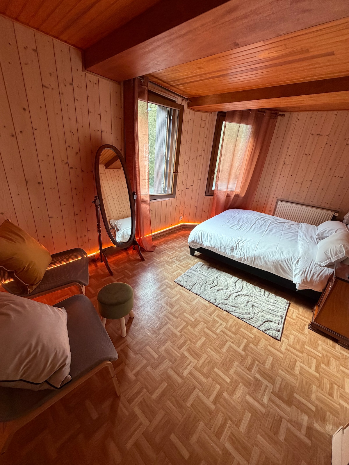 Charmant four à pain ancien en colombages, situé en bord de ruisseau il se compose de : - Salon avec un poêle à bois, - Cuisine, - A l’étage : -salle de douche/WC accessible par une échelle de meunier (voir photos), -chambre avec un lit 160x200 avec vue sur le ruisseau, accessible par une échelle de meunier (voir photos), Chambre et salle de bain ne communiquent pas. Salon de jardin, BBQ, parking privé, bois de chauffage inclus Note autre gite, la Maison de pierres, est à 100m