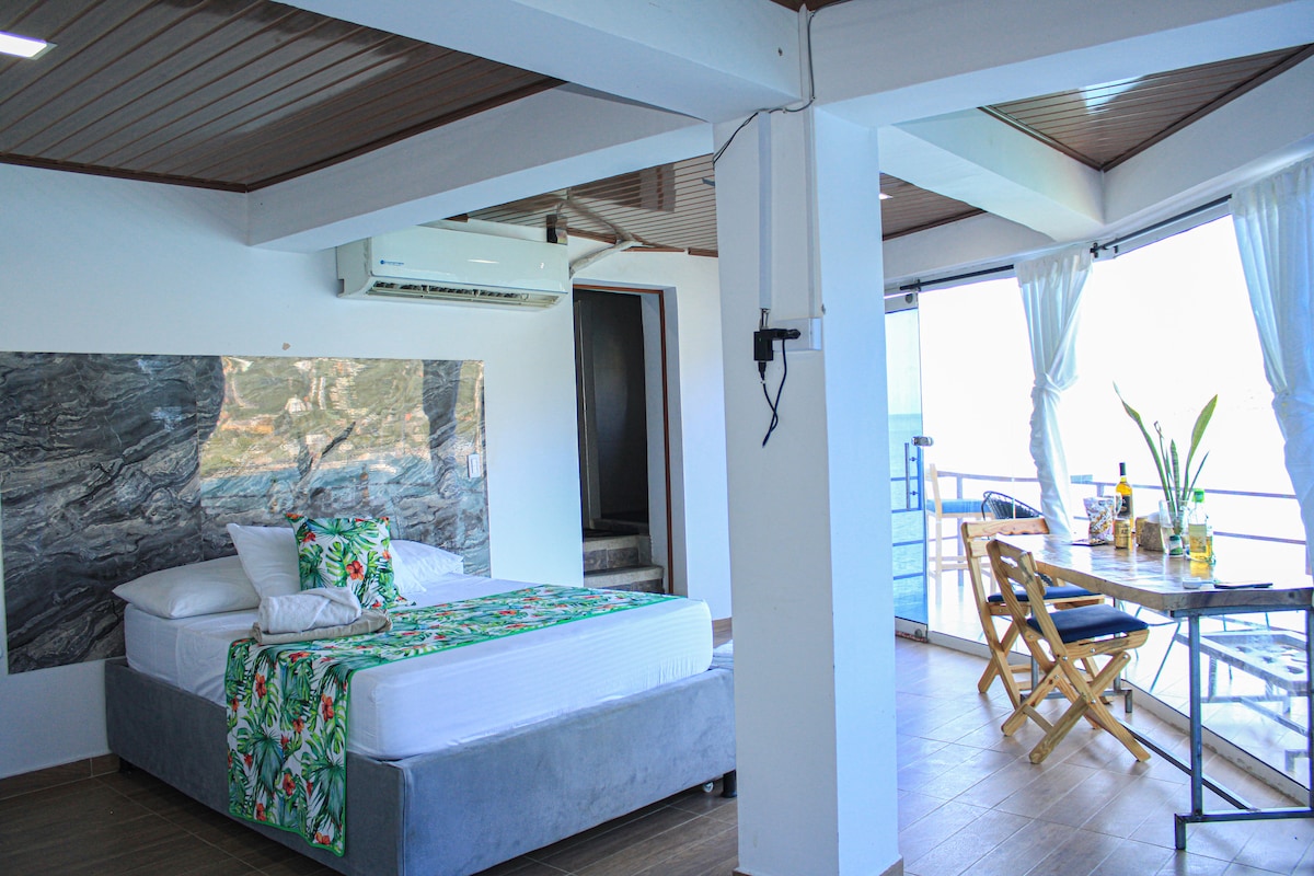 Tayrona Park er lukket mellem 1. og 15. februar 2026. Spektakulær udsigt over bugten, stilfuldt og komfortabelt design, perfekt til at nyde hviledage som par eller lange arbejdsperioder. Fuldt køkken med udsigt over bugten. Stor privat terrasse, aircondition, wi-fi, fiberoptik, internetforbundet tv. Socialt område med stor fælles pool, udsigt over bugten, grill og hvilested. Loftet er ikke egnet til børn eller personer med gangbesvær.