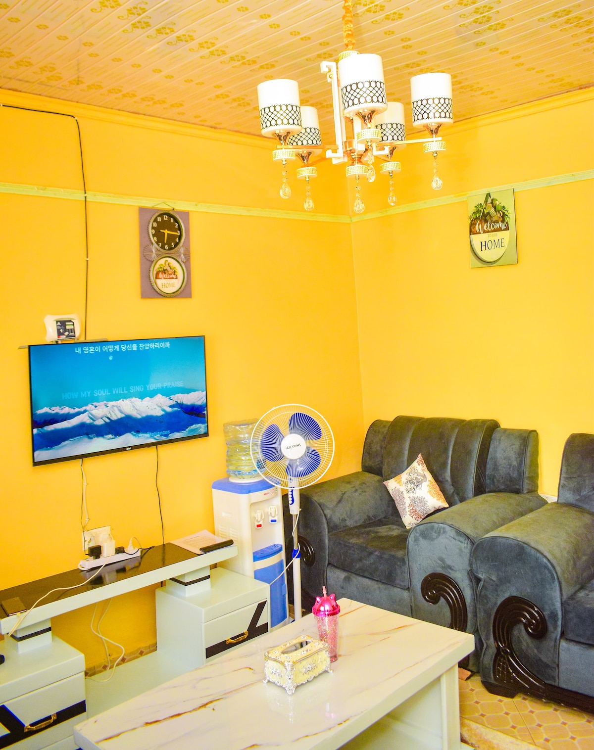 Velkommen til Otic 2 Apartments – African Homely Chic, dit perfekte fristed i hjertet af Bondo. Denne bolig er designet med en blanding af hyggelig komfort og moderne elegance og tilbyder alt, hvad du har brug for til et afslappende, mindeværdigt ophold – uanset om du rejser i forbindelse med arbejde, fritid eller en fredelig smuttur. Træd ind i et smukt udvalgt hjem med varm afrikansk-inspireret indretning, bløde jordagtige toner og en rolig atmosfære, der straks får dig til at føle dig godt tilpas.