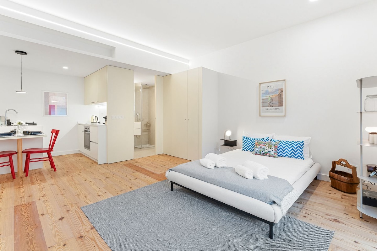1118 Lofts byder dig velkommen til Porto! Den fuldt renoverede bygning fra det 19. århundrede ligger i byens centrum og har seks lejligheder, der alle er møbleret og udstyret med moderne apparater. Bygningen er designet til komfort og stil og har en swimmingpool og en have – perfekt til et afslappet og roligt ophold. God fornøjelse: → Komfortabel queensize-dobbeltseng 160x200 → Privat terrasse med udsigt over poolen → Udendørs swimmingpool med liggestole → Have med loungeområde → Wi-fi → Sengetøj og håndklæder i høj kvalitet → Badeartikler